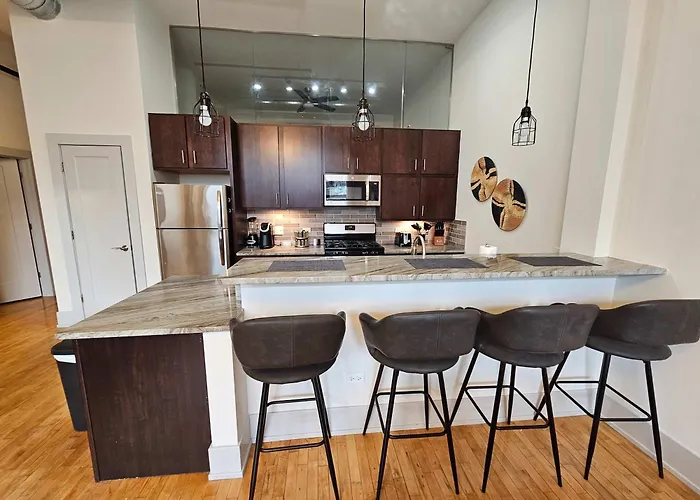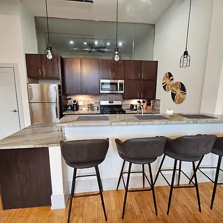 O apartamento 4 Bedroom Sleeps 20 People inclui cozinha totalmente equipada completa com forno e máquina de lavar loiça. O apartamento 4 Bedroom Sleeps 20 People está ao alcance da paragem Loomis & Cullerton.
